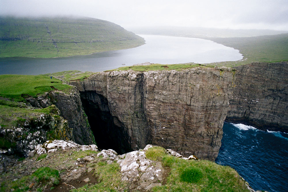 The Faroe Islands (Faroese: Føroyar pronounced [ˈfœɹjaɹ], Danish: Færøerne Danish pronunciation: [ˈfæɐ̯øːˀɐnə]) are an island group and archipelagounder the sovereignty of the Kingdom of Denmark, situated between the Norwegian Sea and the North Atlantic Ocean, approximately halfway between Norway and Iceland. The total area is approximately 1,400 km2 (540 sq mi) with a 2010 population of almost 50,000 people.